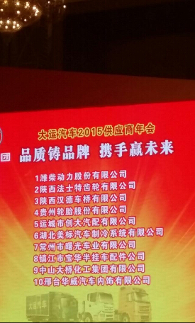 熱烈祝賀創(chuàng)大汽配榮獲大運集團2014年度優(yōu)秀供應商